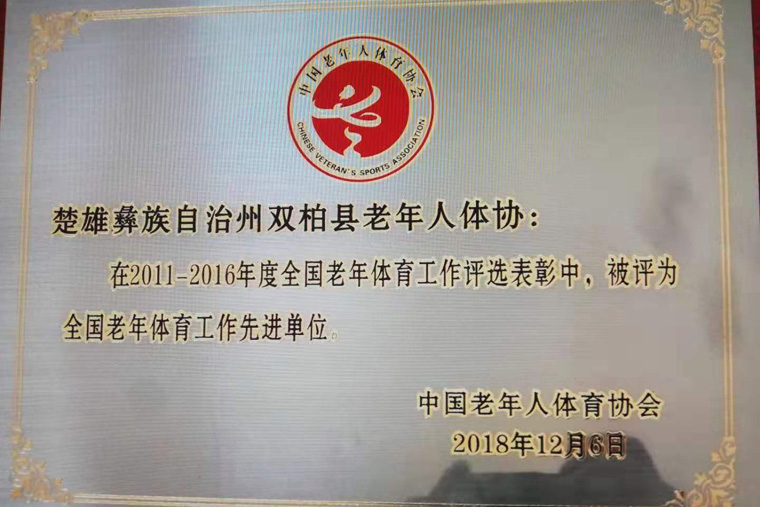 2018年,双柏县被评为全国老年体育工作先进单位。