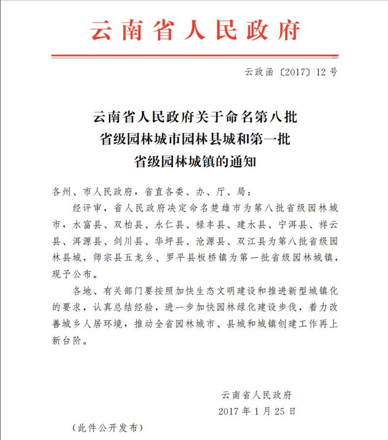 2017年,双柏县荣获“省级园林县城”“省级先进平安县”称号。