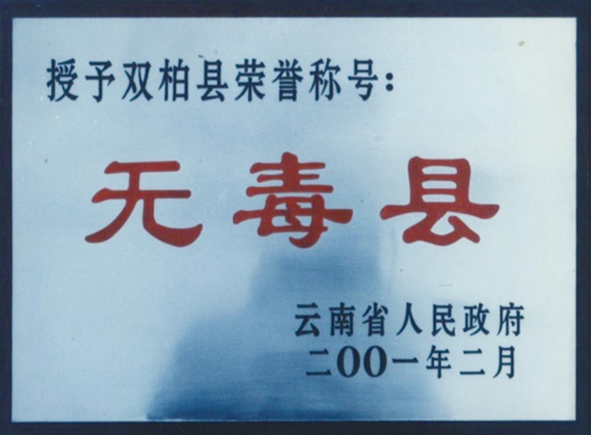 2001年,双柏县荣获无毒县荣誉称号。