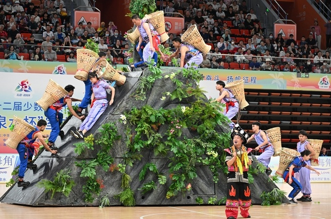每四年举行一届的全国少数民族传统体育运动会,是全国规格最高、规模最大的综合性民族体育盛会,比赛项目分竞赛项目和表演项目,表演项目是全国少数民族传统体育运动会的一大特色,分竞技、技巧和综合三类,由各省参赛代表团根据所在地区特点挖掘、整理、创编而成,尽管具有文艺表演属性,但竞技、趣味、文化、观赏性等一样不少。此次全国民运会,云南省代表团共357名运动员参加了全部18个竞赛项目和7个表演项目的比赛,本次精挑细选了7个参赛作品参加本届民运会的表演项目竞技舞台,民族服饰、生活习俗与艺术表演的完美结合,成为展示云南各民族文化互鉴融通、美美与共,构筑中华民族共有精神家园的有效载体。