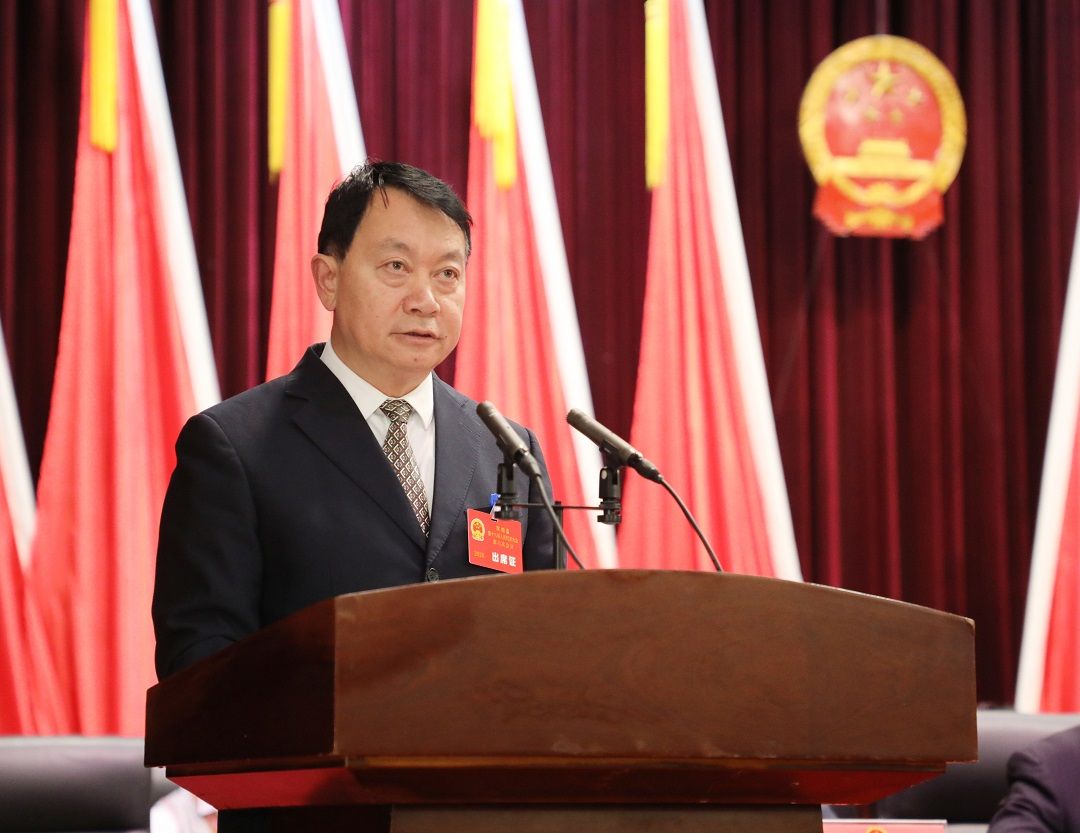 县人大常委会主任王为周向大会报告县人大常委会工作