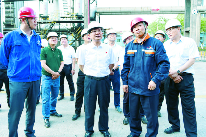 州委书记杨斌等领导在楚雄德胜煤化工有限公司调研督办环保问题整改工作。 (夏天彧摄)