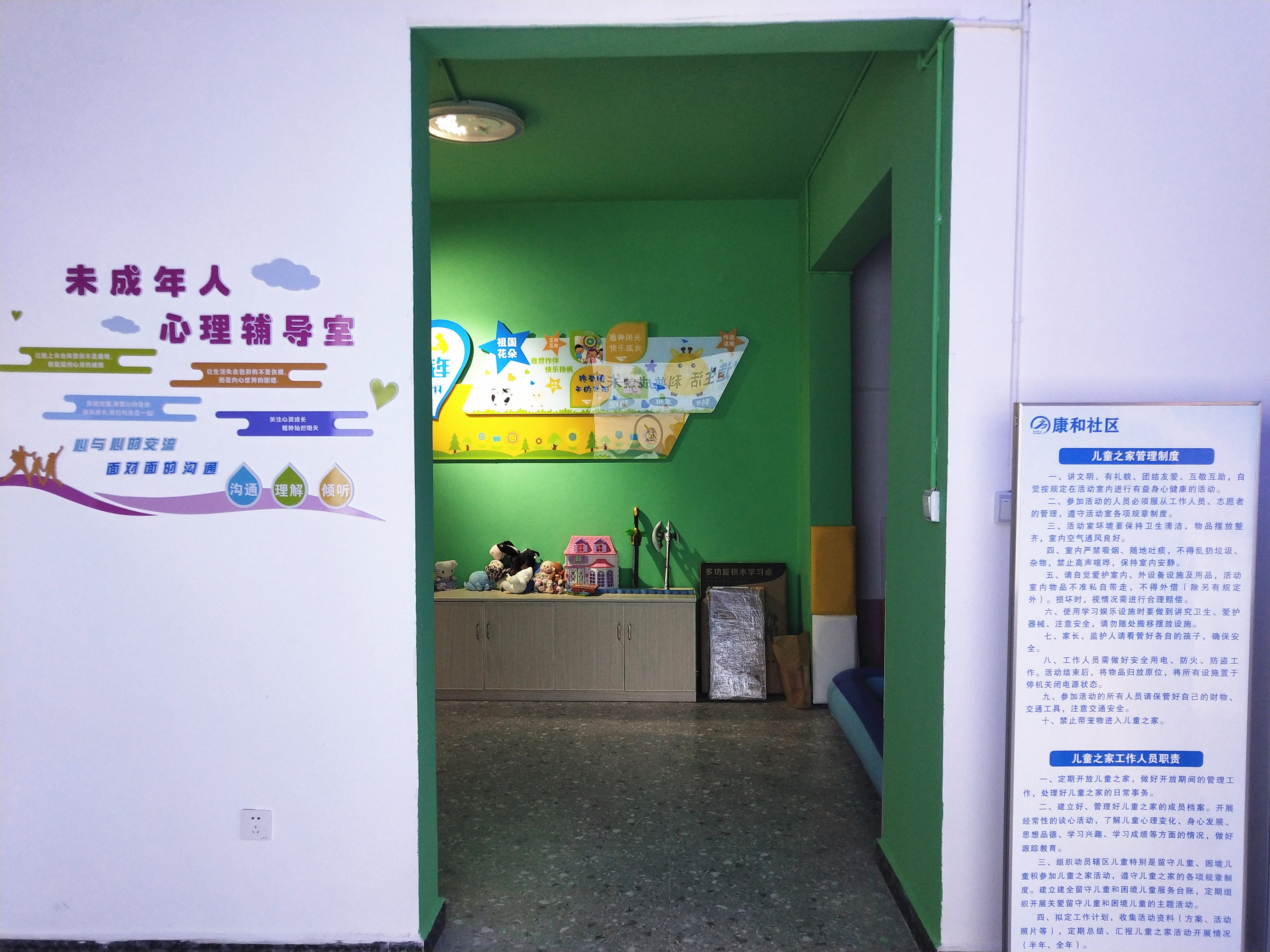 党史学习教育“我为群众办实事”实践活动开展以来,康和社区党总支积极谋划,想办法筹措资金,在统筹利用社区有限的资源上想办法、做文章,按照“一室多用、分区布局、分段使用”的办法,整合社区科普示范室,电影放映室,心理辅导室和家长学校等功能室,建立起了社区“儿童之家”,“儿童之家”整合社区资源设置了室内外活动场所,配置了必要的户外设备和桌椅、书籍、益智玩具等。社区还为“儿童之家”制订了安全管理、设备管理、志愿者管理等各项管理制度、落实了专兼职管理人员,常态化开展儿童关心关爱服务和日常活动组织,结合“我们的节日”,组织系列活动,开展家庭教育和未成年人思想引导,根据儿童特长和兴趣,开展亲子阅读、手工制作、观看电影、文艺表演、经典诵读丰富多彩的活动,潜移默化引导未成年人树立正确的价值观,培养孩子自立自强的意识。