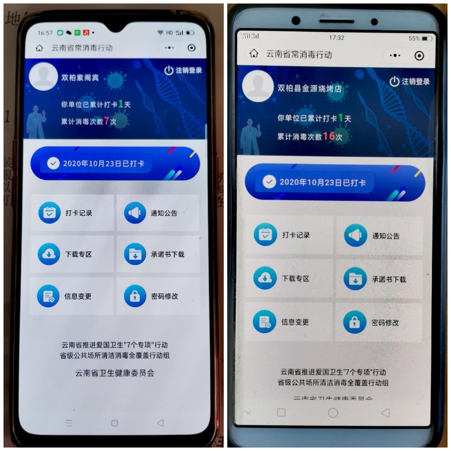 为使消毒真正落实到位,大麦地镇组织10名工作人员进餐馆、宾馆、KTV等商户,一家一户宣传防疫知识和消毒知识,帮助经营户安装消毒小程序,监督业主每日打卡消毒,并由卫生院专业医护人员指导大家使用各种消毒药剂,从而提高群众对消杀的重视。通过小程序的安装使用,不仅利于卫生院合理的安排部署工作,每日可以对经营户消毒情况进行监督检查,还可以时时管控公共场所的卫生消毒情况,以此督促经营户严格执行消毒程序,这一举措切实减轻了工作人员的压力,小程序发挥了大作用,不断助力大麦地镇爱国卫生专项行动取得实效。