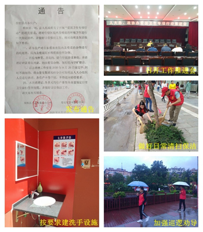 在按要求做好爱国卫生大扫除“众参与”活动、洗手设施全配套等活动的同时,重点是排查包保责任区内存在的问题,并积极研究解决办法。对于原运输公司住宿楼院内的环境脏乱、妥甸镇原住宿区卫生条件不达标、占道摆摊等卫生难题,及时分别向网格长、县人大常委会分管领导、县爱卫办汇报,请求协调相关部门共同研究整改。针对日常保洁中卫生死角清扫不到位、商铺业主“门前三包”责任不落实、行人乱丢烟头等卫生顽疾,一是向所有商铺业主发放了《“门前三包”告知书》;二是安排干部职工加强巡逻劝导工作,特别是强化晚饭后行人较多的时段巡逻劝导,提醒监督商铺业主落实“门前三包”责任、制止行人乱扔烟头等垃圾的行为;三是细化压实了包保责任,将人大常委会办公室包保的网格责任区进行再划分,按照专工委室为单位进行责任细分明确,确保不留卫生死角,不出现责任盲区。