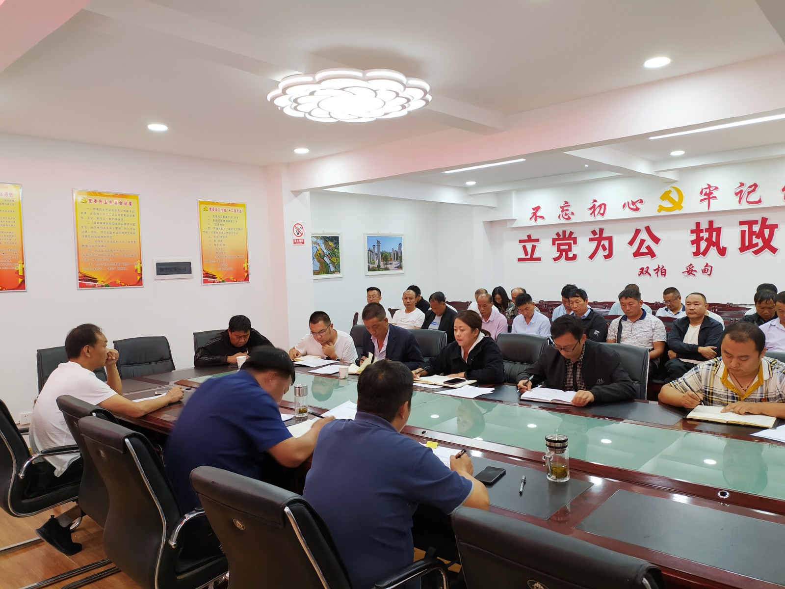 镇党政班子成员、各站所负责人、19个村(社区)总支书记共40余人参加会议。