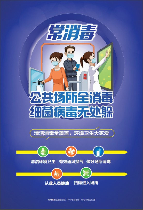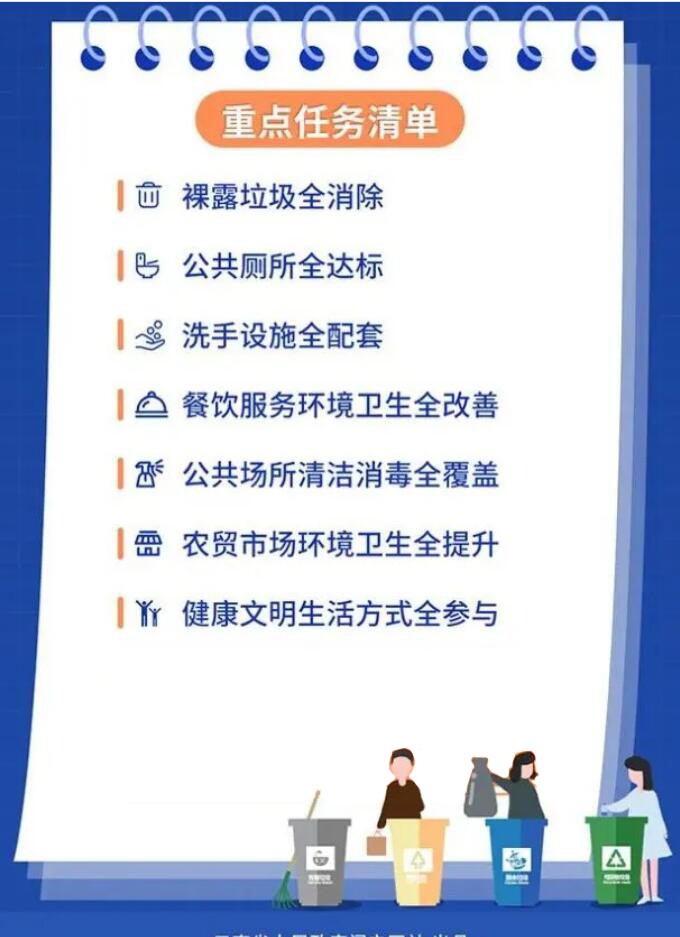 认真开展家庭、社区、工作单位、重点场所、乡村环境卫生大扫除,清除裸露垃圾,定期清洁消毒,清理卫生死角杂物,净化绿化美化家庭环境和公共空间,创造干净整洁的人居环境。
