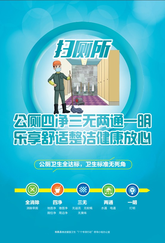 爱护公厕卫生,小便入池,大便入坑,便后及时冲水,洗手后关闭水龙头。不乱倒污水,不乱扔垃圾,不随地吐痰,把垃圾杂物扔进垃圾筒内,保持厕所清洁。户外厕所及时清扫,保证厕所干净整洁,空气流通,设施和工具摆放有序。