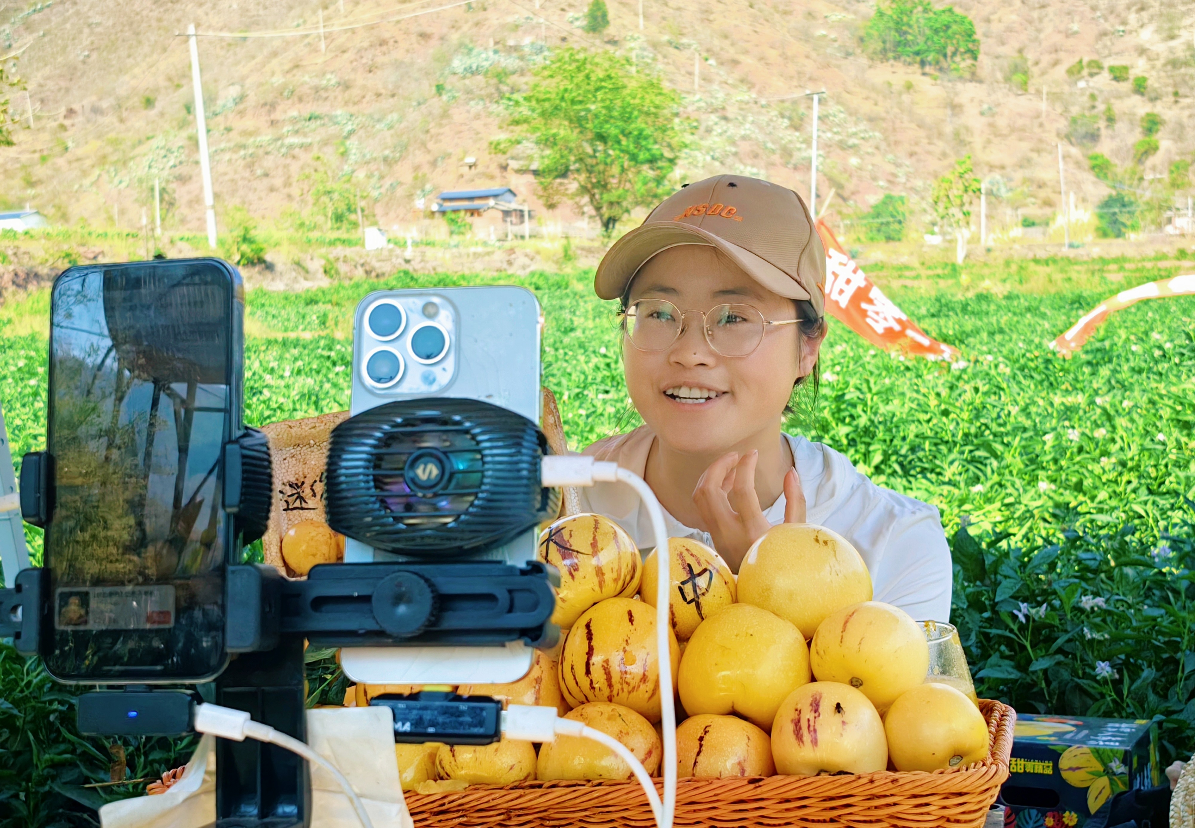 近日来,在妥甸镇马龙河人参果地里,主播们从早到晚不间断地直播,与直播间的用户们积极互动,时而拿起人参果咬上一口,时而给人参果“手动榨汁”,氛围热烈,马龙河人参果的优良品质和香甜多汁通过直播间向更多的网友们全方位细致地展示着,线上订单数量可观。