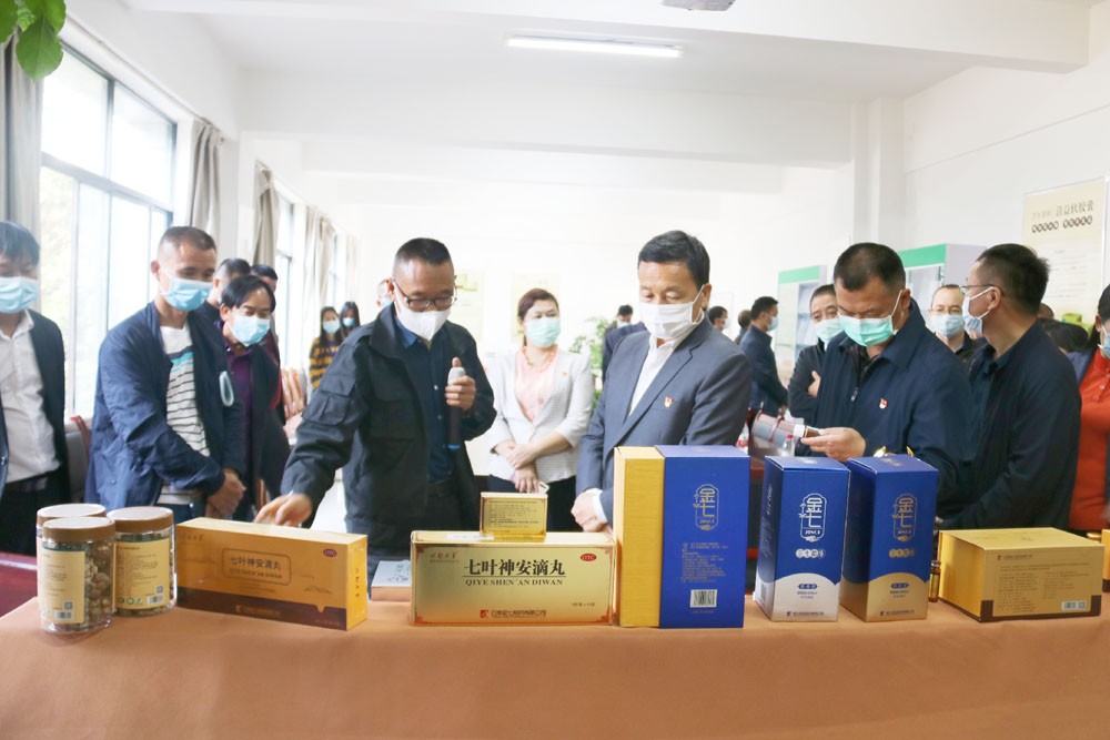 考察期间,重点到云南金七制药有限公司考察了三七现代中药和高端保健品生产情况,听了公司总经理史云龙对健康产品的研究、开发、生产及销售情况介绍,相关中药材企业结合本地的药材资源、发展思路、合作意向等方面做了交流发言。在楚雄州彝药馆,分别参观了中彝医药成就展厅、草药标本展示厅、动物药展示厅建设情况,了解了制剂生产线下步生产运营情况。