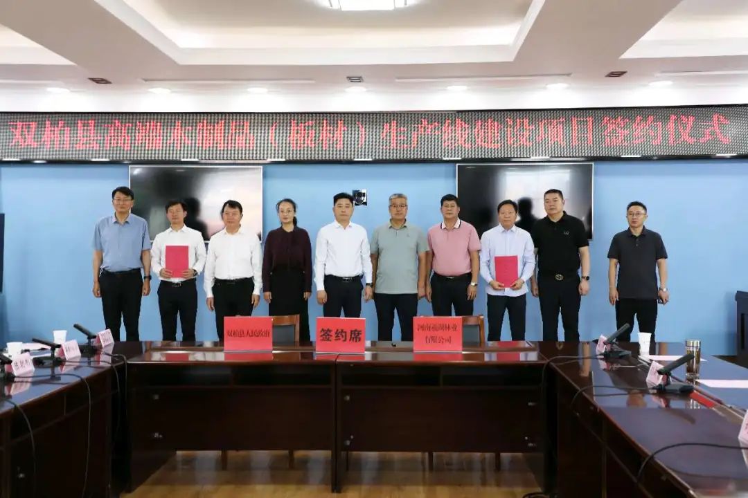 7月9日,河南羲湖林业有限公司董事长刘心旺一行赴双与县委书记金鸿、县人民政府县长杨梦婷,就充分挖掘双柏资源优势,深化林业资源开发、共建高端木制品加工产业进行了交流洽谈。随后,双柏县与河南羲湖林业有限公司举行《双柏县高端木制品(板材)生产线建设项目》投资协议签约仪式。签约仪式由县人大常委会党组书记、主任王为周主持,县委常委、县人民政府常务副县长陈朝刚代表县人民政府与河南羲湖林业有限公司副总经理孙新甫进行签约。县处级领导杨辉、王清宏及相关县级部门主要领导见证签约。