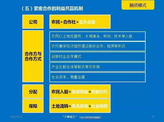 《指引》同时要求,根据各地农业农村实际发展情况,因地制宜创新投融资模式,通过独资、合资、合作、联营、租赁等途径,采取特许经营、公建民营、民办公助等方式,健全联农带农有效激励机制,稳妥有序投入乡村振兴。