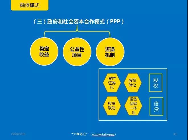 鼓励信贷、保险机构加大金融产品和服务创新力度,配合财政支持农业农村重大项目实施,加大投贷联动、投贷保贴一体化等投融资模式探索力度。 积极探索农业农村领域有稳定收益的公益性项目,推广政府和社会资本合作(PPP)模式的实施路径和机制。鼓励各级农业农村部门筛选并培育适于采取PPP模式的乡村振兴项目,优先支持农业农村基础设施建设等有一定收益的公益性项目。