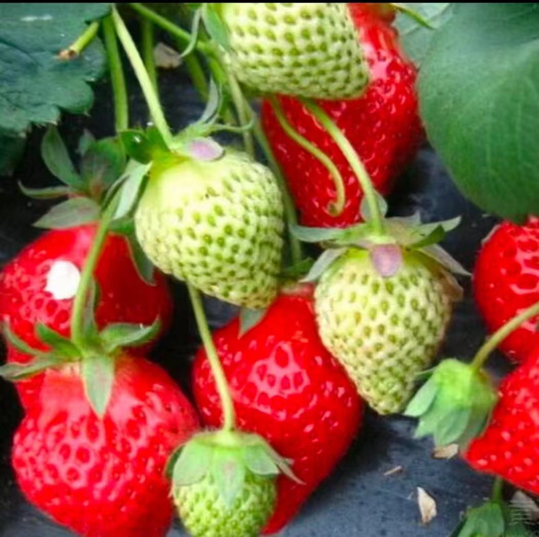 据悉,该品种属大叶红颜草莓,具有植株长势强,株态直立,易于栽培管理,叶片大,新茎分枝多,连续结果能力强等优势;其外形类似圆锥形,硬度大、果面红色有光泽,平均单果重28克,大果重100克以上,具有明显优于其他一般草莓品种的特点。