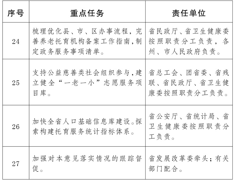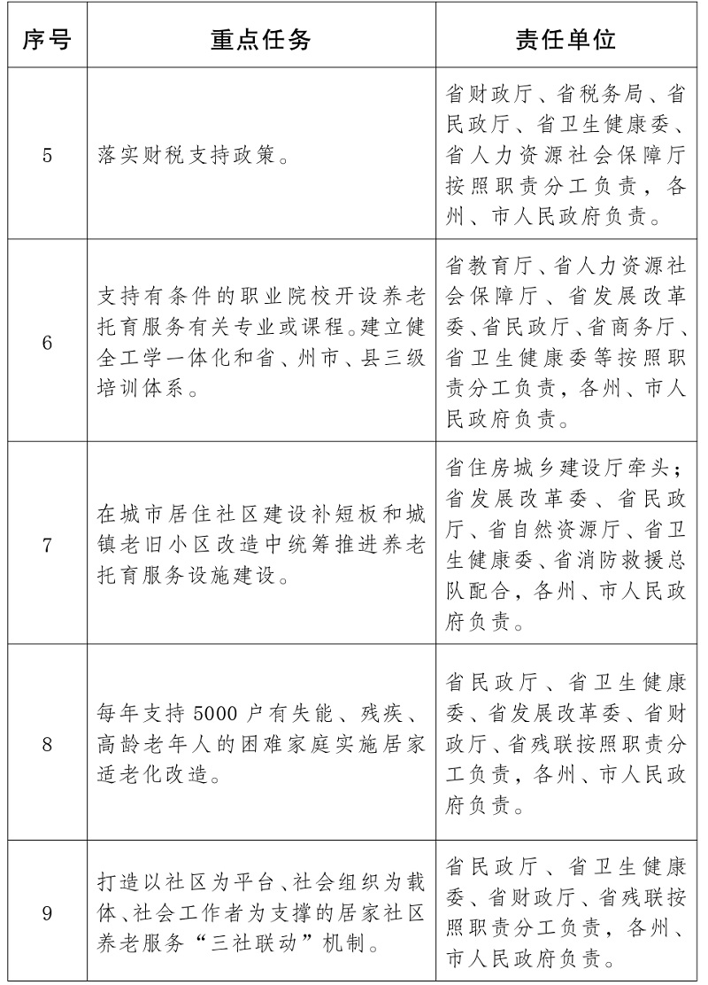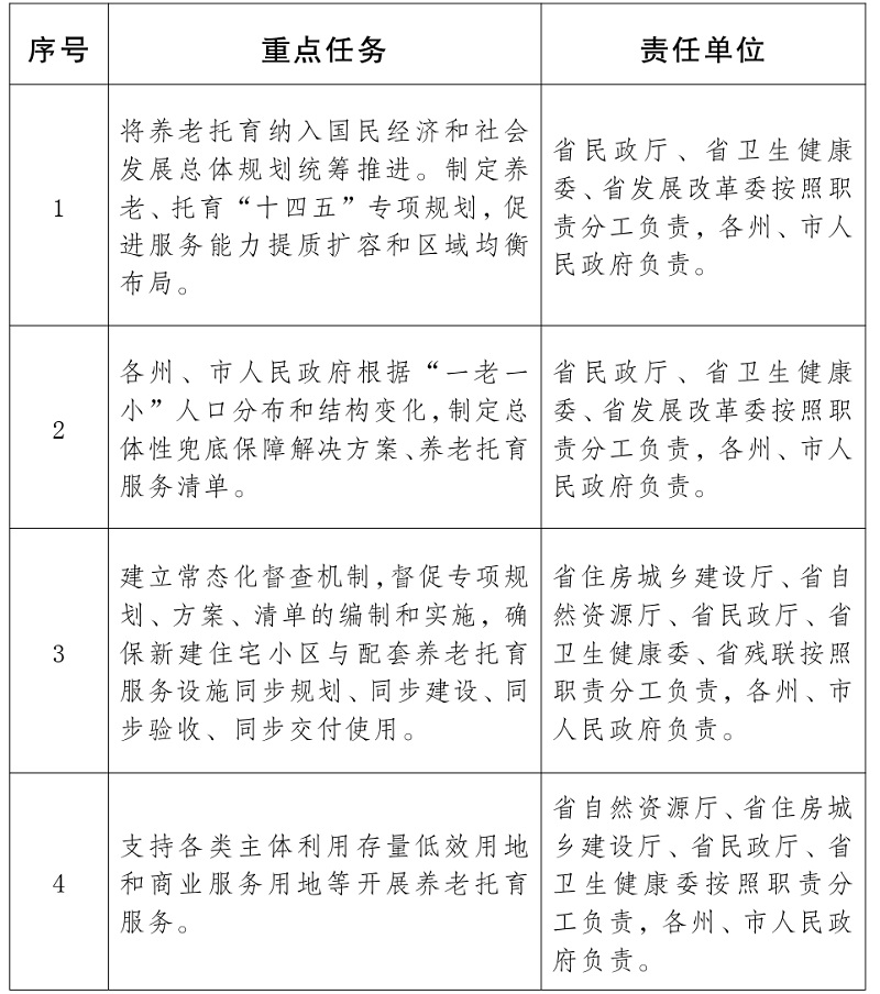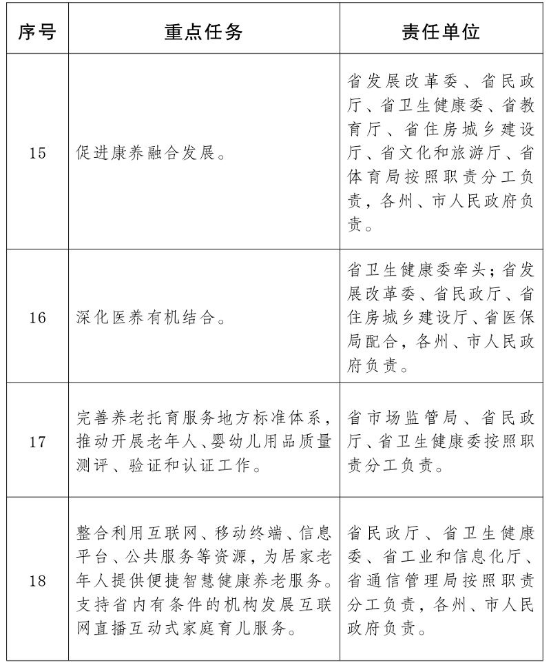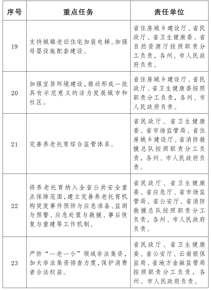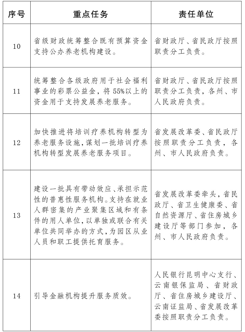 云南省养老托育服务健康发展重点任务及责任分工