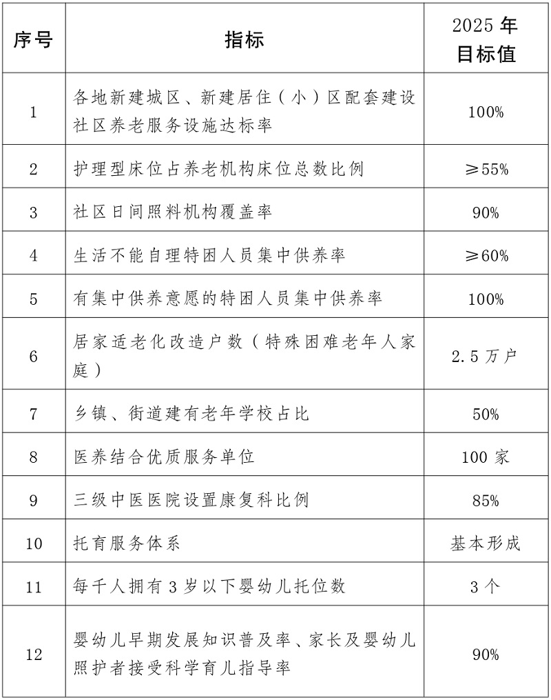 云南省养老托育服务健康发展主要目标