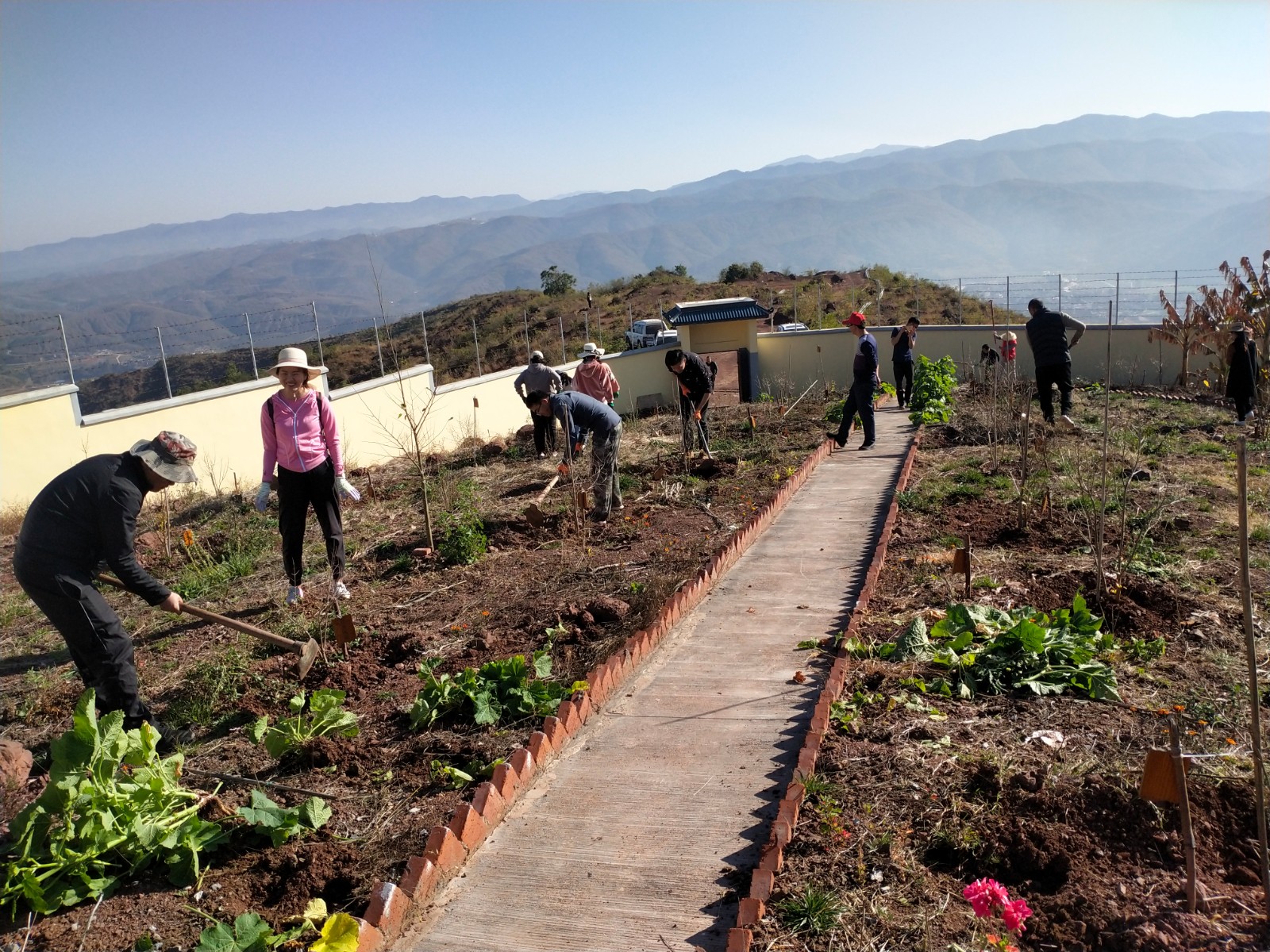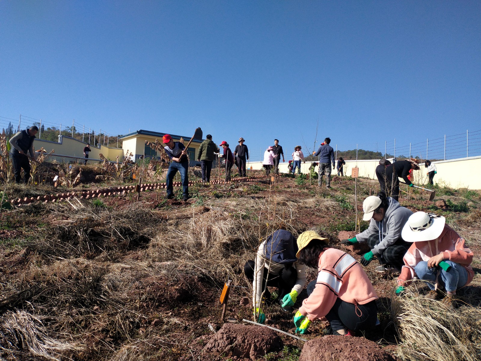 顺利登顶后,职工们撸起袖子在石榴基地除草、施肥、浇水,大家热情高昂,挥锄培土,在团结奋进中焕发新气象。