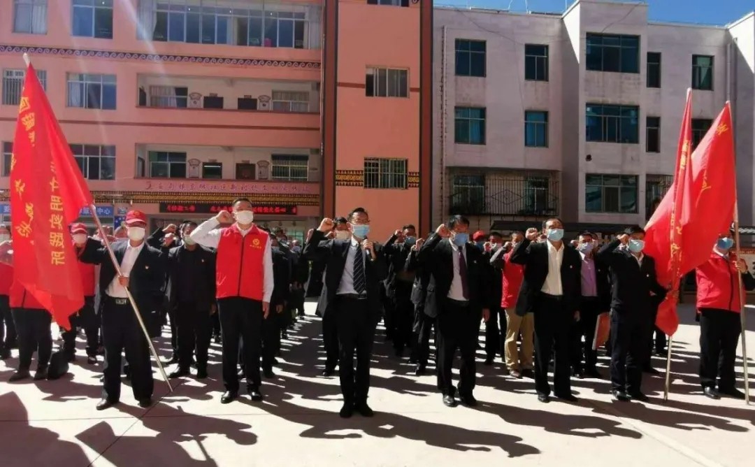 仪式上,镇党委书记瞿波、镇党委副书记、镇长李忠元共同为妥甸镇新时代文明实践所揭牌,为6个服务站和6支志愿服务队授牌、授旗;瞿波带领全体志愿者进行了宣誓。