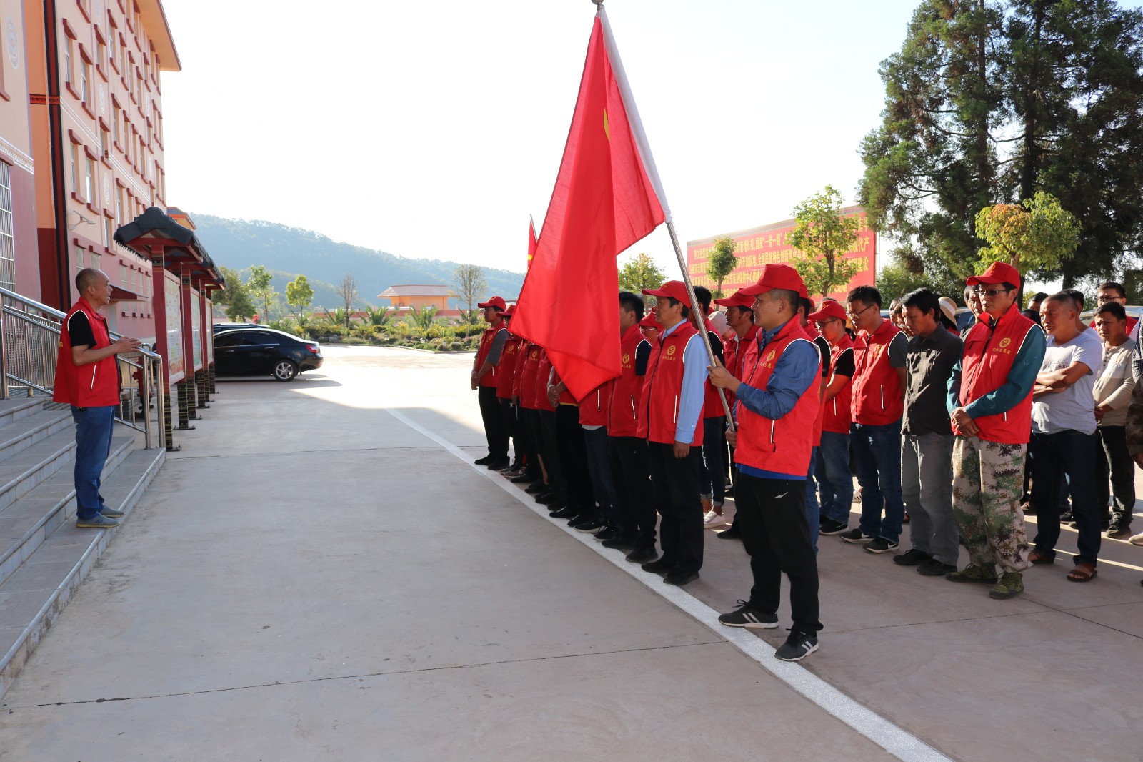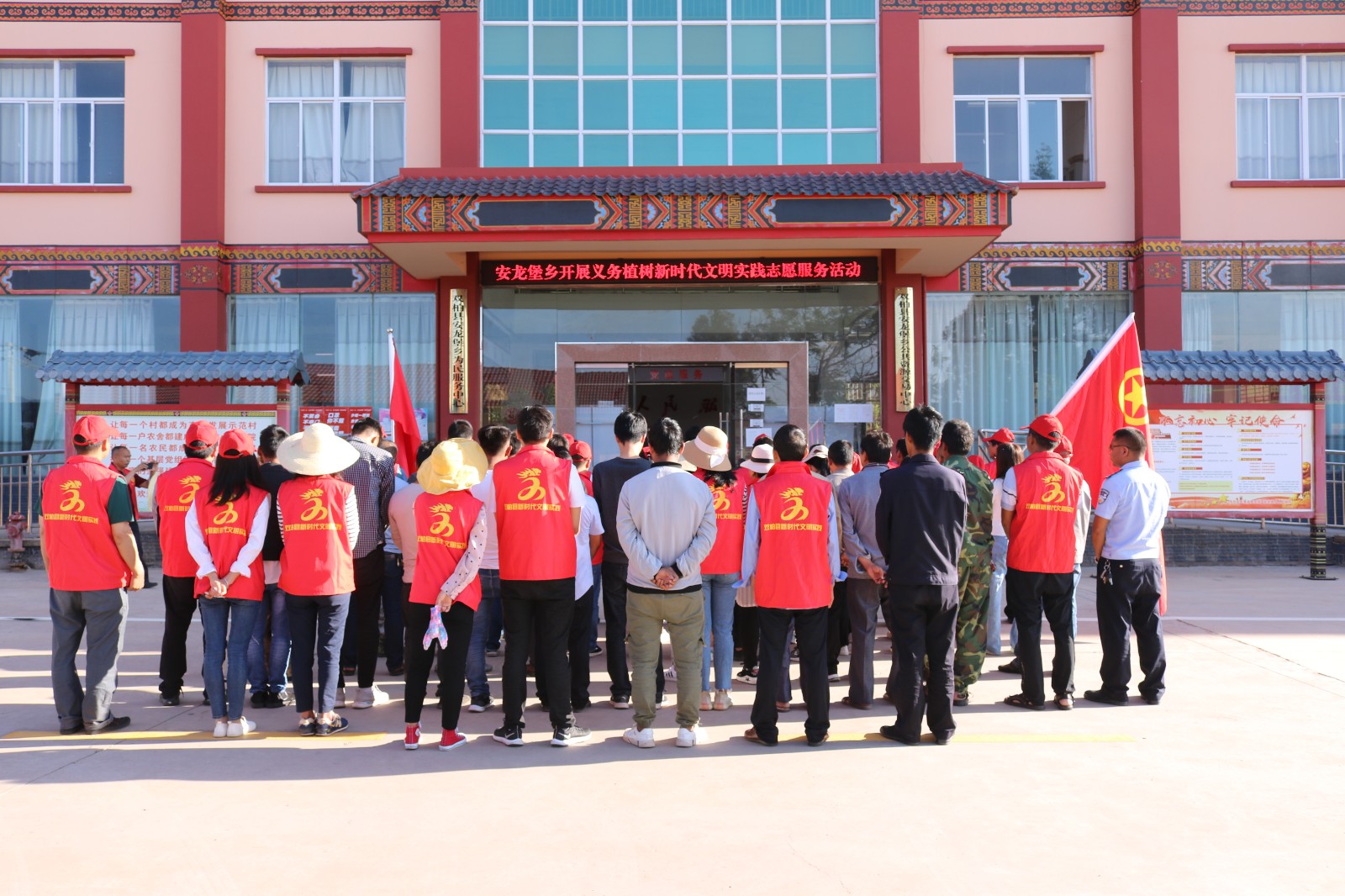 安龙堡乡新时代文明实践所志愿服务队旗帜飘扬,红马甲攒动,志愿者们热情高涨、积极行动,两三人一组,分工明确、配合默契,有的拿铁锹,有的运树苗,你追我赶,比干劲、比进度,各个环节衔接有序,样样做得认真到位,个个忙得满头大汗,到处都是忙碌的身影和劳动的欢声笑语......经过志愿者们2个多小时的奋战,一棵棵樱花、马缨花、金银花被种下,原本空旷荒芜的栈道、陡坡上增添了一片片新绿,春意更浓了,大地更绿了,到处都是生机勃勃的景象。