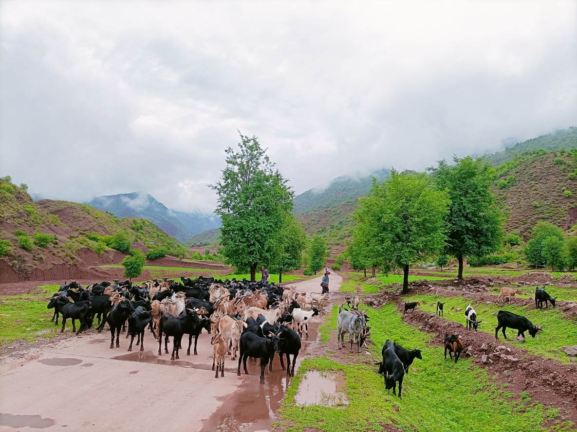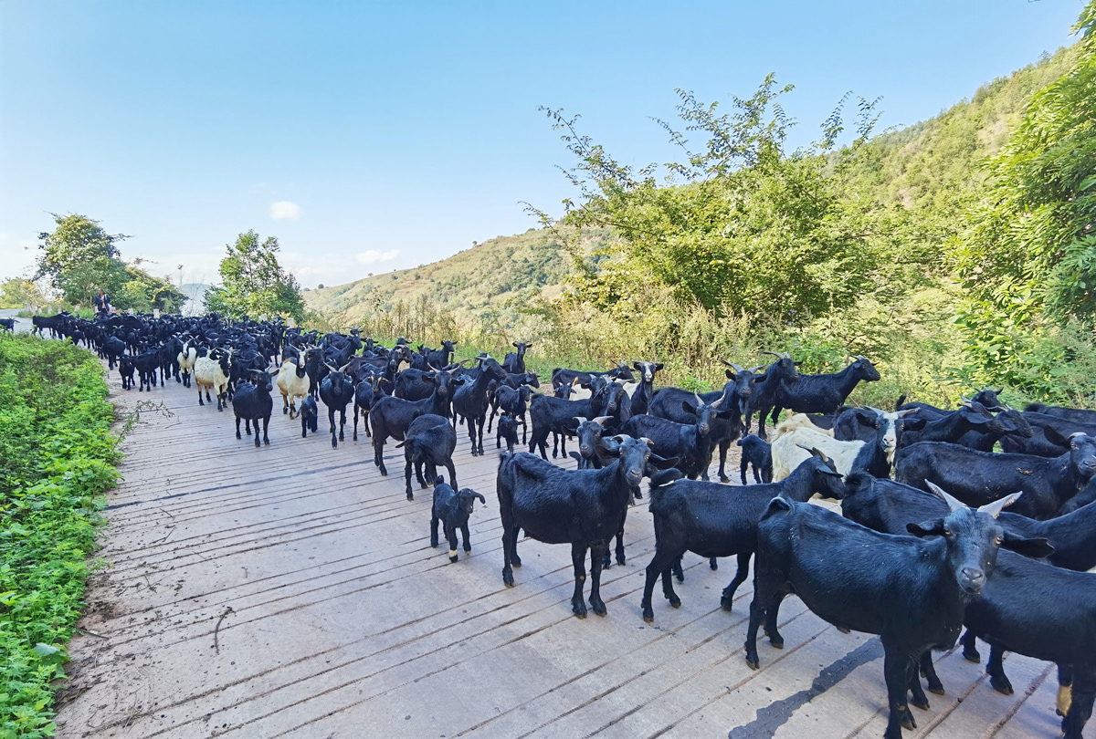 “我家人手少,没有条件干别的农活,我们夫妻俩专门养牛羊,每天上山放羊辛么辛苦些,但每年的收入还算可以。”蚕豆田村委会橄榄得二组的普大哥告诉我们。普大哥是当地有名的养羊大户,有十余年的养羊经验,今年他家养殖黑山羊160余头。据他介绍大麦地一带的黑山羊以灵敏活泼,善于爬山采食,耐粗放饲养,抗病力和适应性强为特征,近期随着雨水增多,山上的牧草生长较好,每天放放山,有利于羊的生长。天然放养的方式也让山羊的肉质细嫩鲜美,营养丰富、膻味轻,且生长发育快、繁殖力高,产肉性能好,深受广大食客和不少外地客商的青睐。只见在普大哥的几声召唤下,一大群通体黝黑、身形健硕的黑山羊纷纷从半坡而下,传来阵阵“咩咩”的羊叫声。