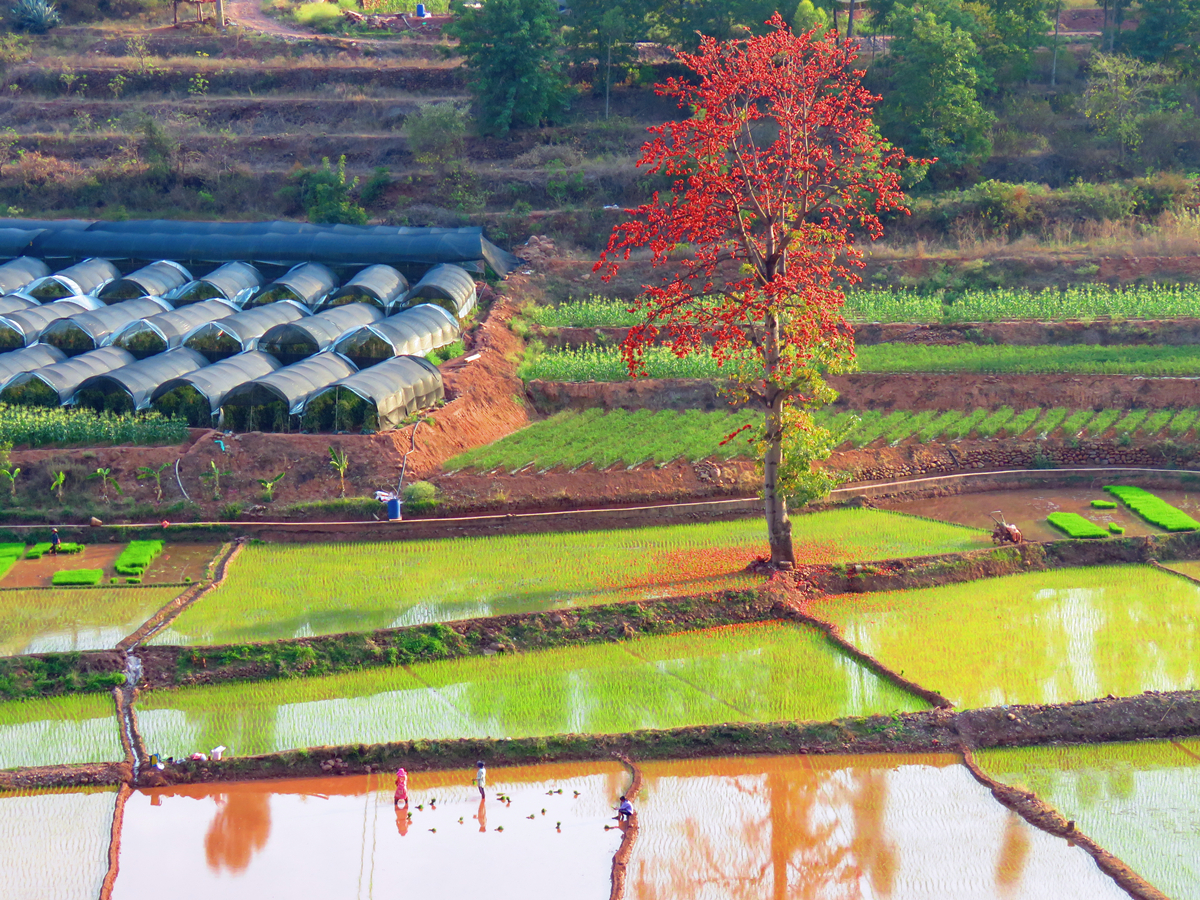 近年来,大麦地镇立足光热、气候和土地资源优势,以热作果蔬主导产业为核心,培育壮大优势特色产业,打造好“一乡一特”品牌产业,持续抓好沿江一线以西红柿为主的冬早蔬菜产业发展,扶持农业专业大户和家庭农场,大力发展农民合作社、龙头企业等多种经营主体,使其成为全镇特色农业开发的引领。与此同时,全镇深入落实粮食安全观,压实粮食生产工作责任,实行经济作物和粮食作物两手抓的发展模式,联合农业农村部门提供技术指导,抓实农机安全工作,严格监管农资市场供应并定期进行检查,宣传普及农业保险,积极推动惠农措施惠及千家万户,在沿江6000亩西红柿产地套种玉米、大豆等方式,既发挥优势抓产业促增收,又全力保障粮食生产,提高农户种粮积极性。通过扎实有力的举措,统筹抓实既要发展和安全,实现产业兴旺、群众增收、粮食安全的目标。