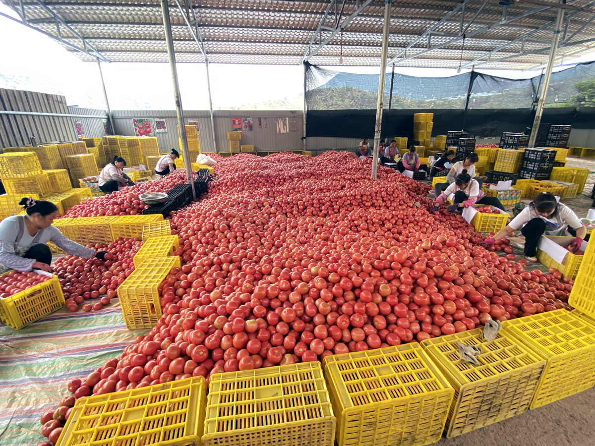 春回大地,气温逐渐转暖,沉寂一个冬天的树木吐出新芽,云南省楚雄彝族自治州双柏县大麦地镇绿汁江边正是一派热火朝天的丰收景象,连绵起伏的大棚下,每天都能看到数百十名工人忙碌采摘西红柿的身影,成熟的西红柿运往收购点进行分装,繁忙的大车在路上来来往往,将一筐筐个大饱满的西红柿运往全国各地。