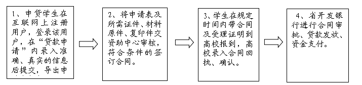 学生签订借款合同后,县学生资助中心向学生出具贷款受理证明,学生携贷款受理证明到高校报到进行登记,由高校在线录入合同回执效验码并确认。
