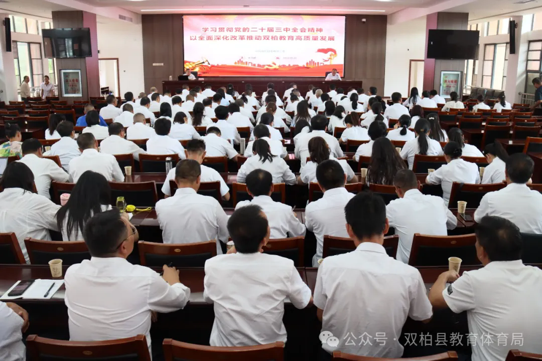 为进一步学习贯彻落实党的二十届三中全会精神,强化理论武装,9月20日下午,双柏县教育体育系统党的二十届三中全会精神宣讲报告会在县委党校举行。县委宣讲团成员,县教育体育局党组书记、局长李泽鹏为县教育体育系统干部职工作宣讲。