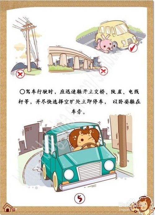 在行驶的电(汽)车内:抓牢扶手,以免摔倒或碰伤;降低重心,躲在座位附近。地震过去后再下车。