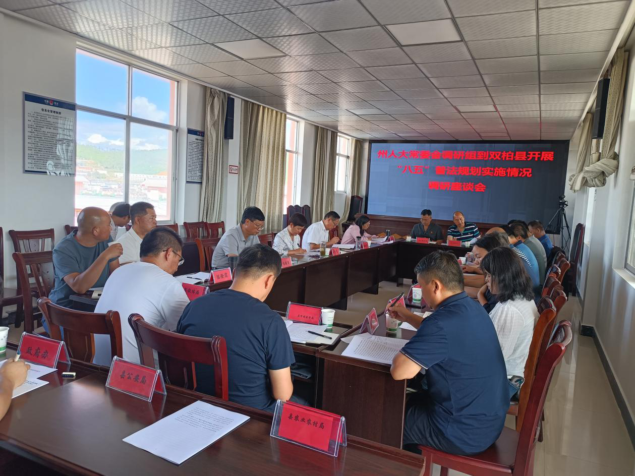 7月21日,由州人大常委会党组成员、副主任李坚,州人大常委会法制和监察司法工作委员会主任刘汉勇,州司法局二级巡视员杨继周等组成的调研组到双柏县开展“八五”普法规划实施情况调研。