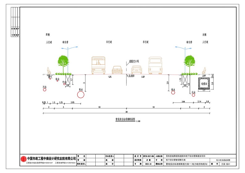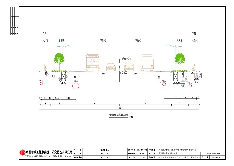 附件:管线综合标准横断面方案一(电力电信线缆沟)、管线综合标准横断面方案二(电力、电信排管)