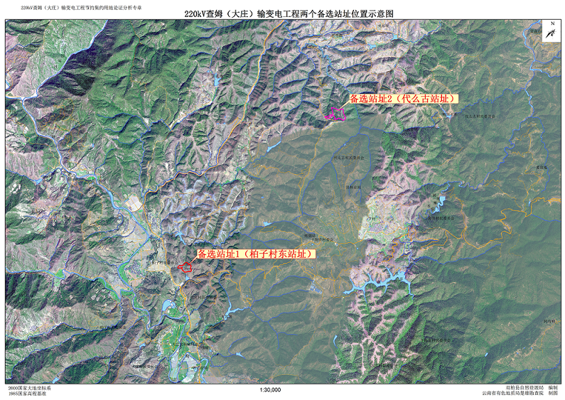 附件:近期工程位置图备选站址1(柏子村东站址)、备选站址2(代么古站址)