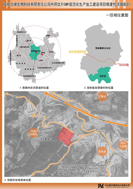 根据《楚雄州实施“阳光规划”的意见》,现对双柏文峰生物科技有限责任公司中药饮片GMP规范化生产加工建设项目修建性详细规划进行审查前公示,社会各界人士若有意见和建议,请在公示期内向公示组织单位电话或者书面反映。