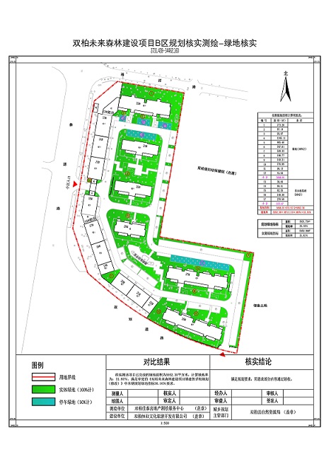 项目简介:双柏恒业文化旅游开发有限公司开发建设的双柏未来森林建设项目B区位于云南省楚雄彝族自治州双柏县妥甸镇西城社区彝源路(南段)东侧,规划总用地面积18711.10㎡,其修建性详细规划于2020年07月28日审定,分三期实施建设,其中双柏未来森林(A区)建设项目于2022年08月16日通过规划核实验收。双柏未来森林建设项目(B区)规划用地面积18711.1㎡,总建筑面积26066.85㎡,其中地上建筑面积28083.91㎡(为计容建筑面积),地下建筑面积0㎡,容积率1.5,建筑密度25.69%,绿地率31.10%,机动车停车位214个(地上停车位214个,地下停车位0个)。2020年12月24日项目建设单位根据审定的项目修建性详细规划,办理了未来森林建设项目(B)区《建设工程规划许可证》(编号为建字第双柏县20200015号),规划许可总建筑面积26066.85㎡,其中地上建筑面积26066.85㎡,地下建筑面积0㎡。2025年7月22日双柏恒业文化旅游开发有限公司向我局申请对已竣工的双柏未来森林建设项目(B)区建设内容进行规划核实验收,经测绘单位实测和现场比对审核,实测指标(双柏未来森林建设项目(B)区实测用地面积18711.1㎡,总建筑面积25845.71㎡,其中地上建筑面积25845.71㎡,地下建筑面积0㎡,建筑密度25.57%,容积率1.49,绿地率31.81%,此外实测机动车停车位共214个(均为地上停车位)。现该项目一期及二期均已实施完毕,经审核整体经济技术指标及公建配套、工程管线等符合该项目规划,根据《楚雄彝族自治州建设工程竣工规划验收管理办法》的规定特进行公示,如对双柏未来森林建设项目(B)区规划核实验收有异议的请在公示期限内与我局联系。