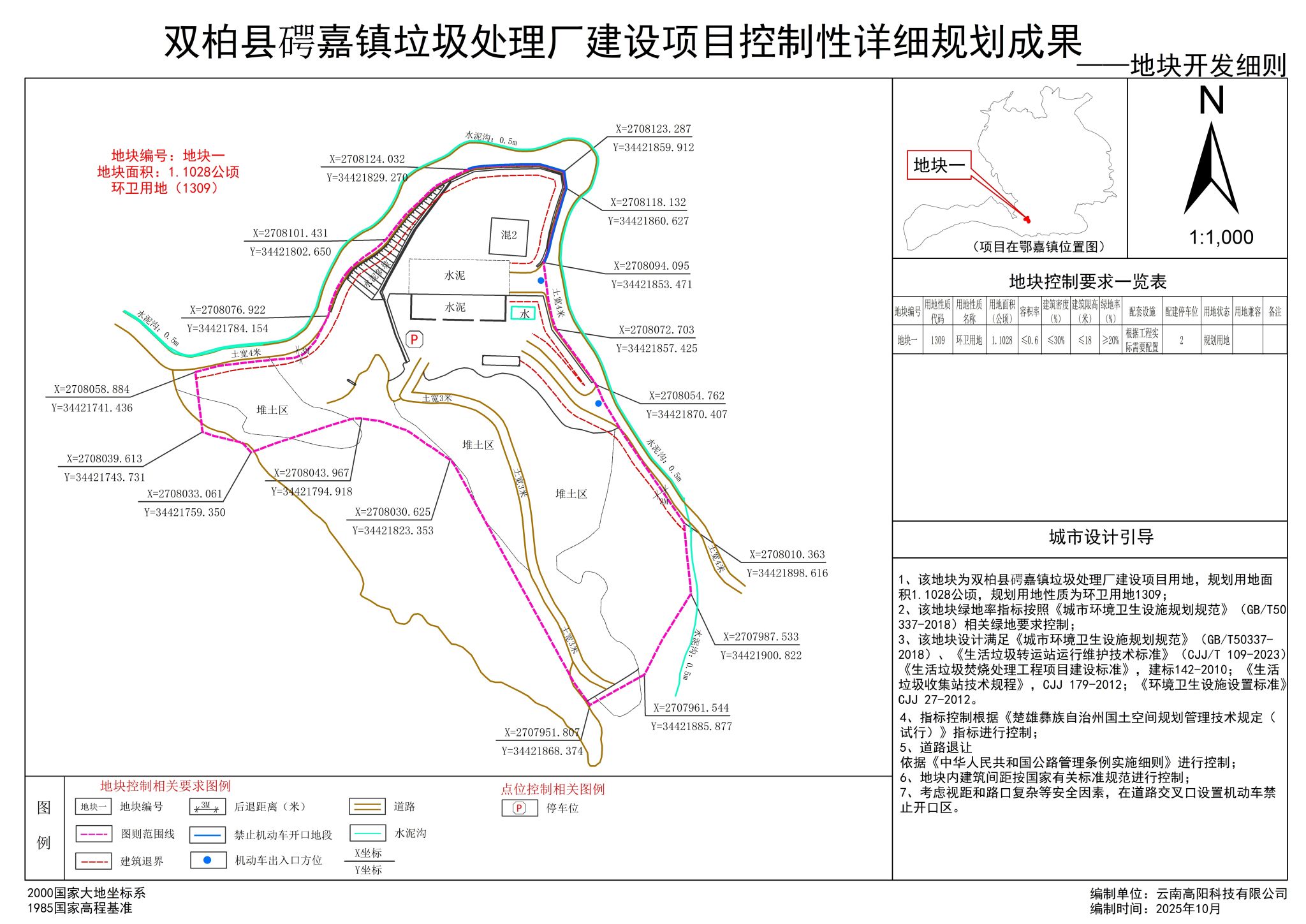项目简介:根据《云南省国土空间详细规划编制导则(试行)》,针对双柏县𥔲嘉镇垃圾处理厂建设项目用地进行地块层次详细规划编制。本规划重点对地块的用地性质、用地面积、建筑密度、容积率、建筑限高、绿地率等内容提出引导性要求,本规划将作为后续控制土地批租、出让的依据。