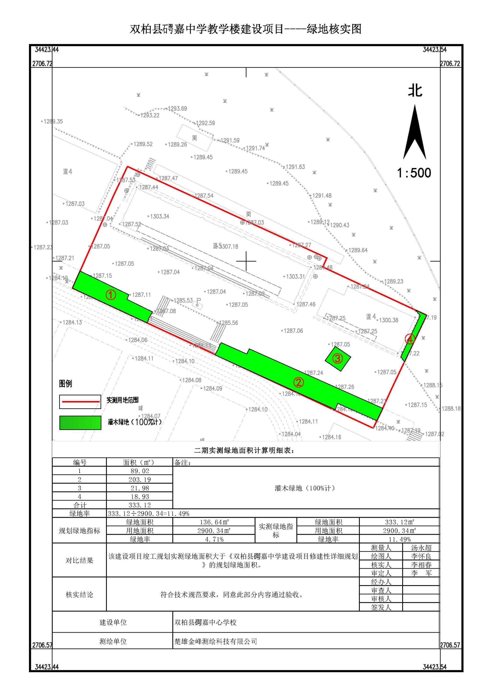 附件内容:1.双柏县𥔲嘉中学教学楼建设项目绿地核实图;