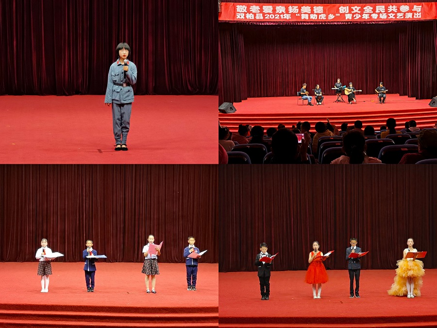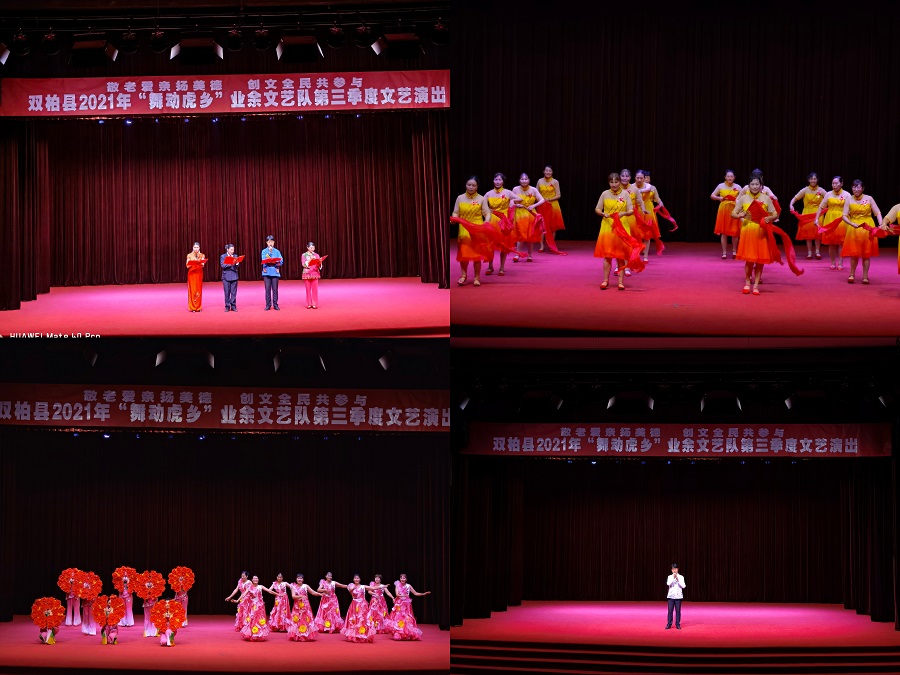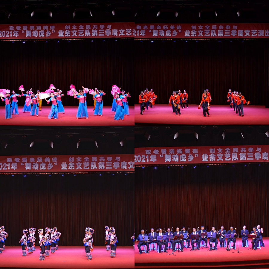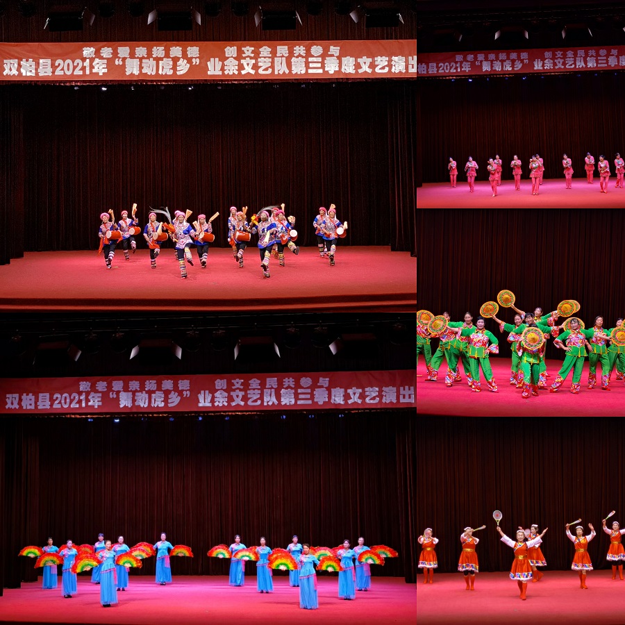 10月15、16日连续两晚,双柏县文旅局、县文化馆联合县委组织部、县教育体育局、县卫生健康局、县人力资源和社会保障局等部门在民族文化中心会堂共同举办2021“舞动虎乡”文艺演出。