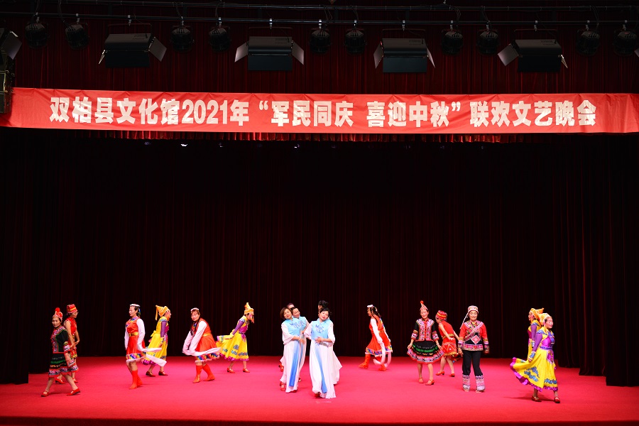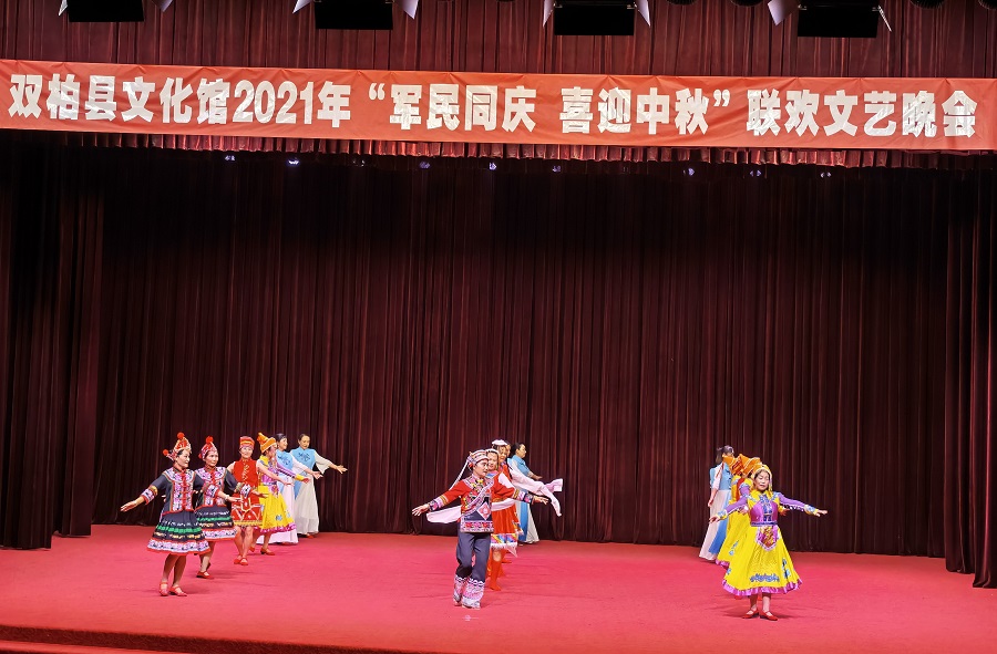 秋风送爽,花好月圆。在中秋佳节即将到来之际,为进一步传承和弘扬中华优秀传统文化,增强节日文化氛围,丰富广大群众的精神文化生活。9月12日晚,双柏县文化馆在县民族文化中心会堂举行了2021年“军民同庆 喜迎中秋”联欢文艺晚会。县委副书记姚云来、 县委常委、县人民政府副县长姜自发、县委常委、县政法委书记普联宏、县人民政府副县长王建富、县人民武装部部长肖新雄等领导应邀出席本次文化进军营活动。县文旅局、县退役军人事务管理局、消防救援大队、县公安局、县人民武装部、县武警中队干部职工和城区部分群众共同观看了演出。