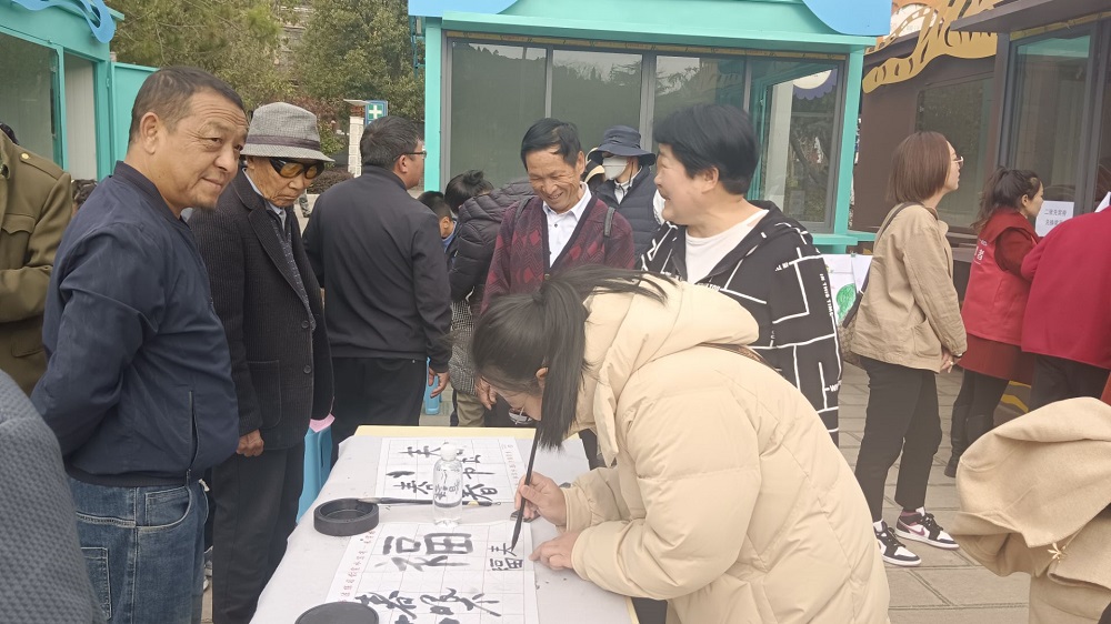 在阖家团圆与文化传承的美好时刻,邀请广大群众、游客、干部职工共享元宵佳节。工作人员着志愿服、汉服、民族服饰,内容形式多样,图书馆工作人员现场精心布置开展“元宵节”主题画年画、书法体验活动,增添文化底蕴,增强文化自信,用笔尖、色盘描绘浓浓年味。“我爱记诗词”诗词接龙活动,主持人设置的即兴诗词接龙活动,在诗词接龙游戏中回顾中国传统诗词文化魅力。
