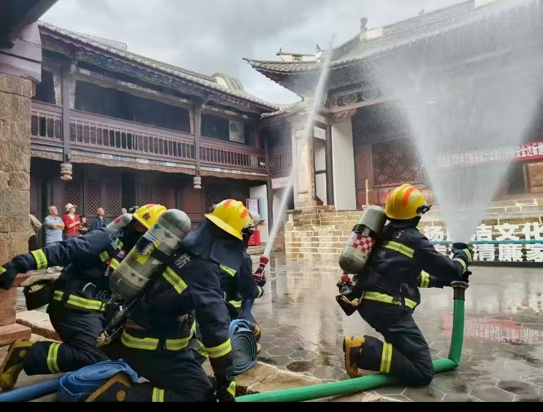 实战演练,效果显著。在省级重点文物保护单位大庄苏氏祠堂和县级重点文物保护单位妥甸镇罗韶祠堂的演练中,县文化和旅游局分管安全生产的副局长围绕文物系统安全作了动员讲话,强调了演练目的与任务。县消防救援大队指战员就消防救援具体环节和防范措施及应对突发火灾和消防水泵的使用等方面作了系统培训。随即,按照演练方案开展实地演练。县、乡、村三级相关单位干部及群众共计80余人次参与活动。
