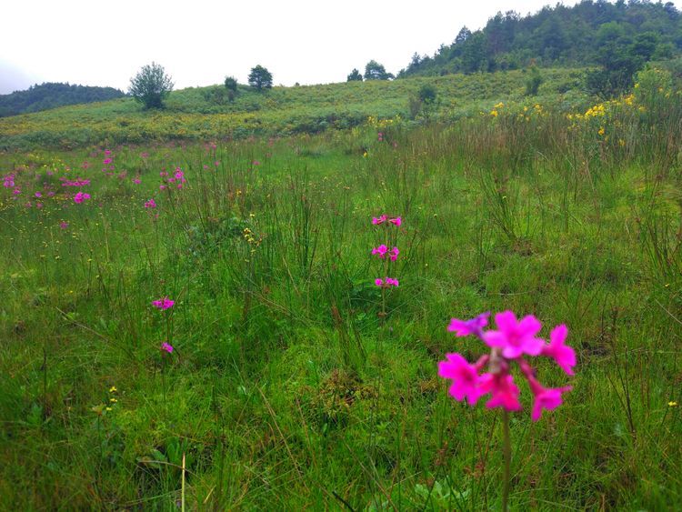 湿地一侧是哀牢山茂密的原始森林和群峰山峦,一侧是低矮平缓的丘陵,两侧不同的山体形态和植被类型,形成强烈的对比。漫步在这平坦开阔的山谷草甸中,仿佛走入一处被遗忘的空间,看溪流缓缓流淌,野花杂草遍地覆盖,牛羊成群悠闲自得。这一刻,时光停滞,心灵放飞。