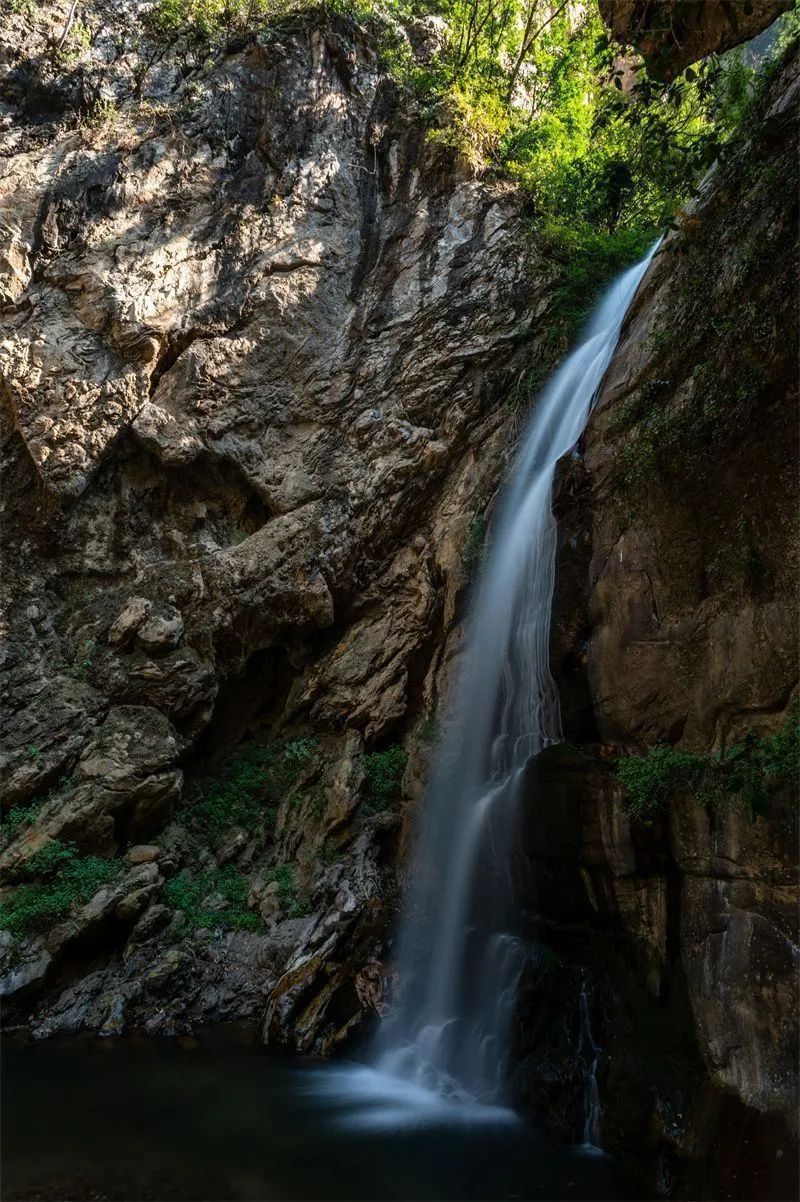 鄂嘉山有多高,水就有多长,流泉在高山峻岭间迂回跌宕,形成了如诗如画的瀑布群。瀑布落差有大有小,有的20多米,有的近百米,在密林深处、山雾弥漫间跌落回荡着,发出巨大的轰鸣声,一瀑一景,景致奇特。其中,最为壮观的要数虹龙河瀑布。