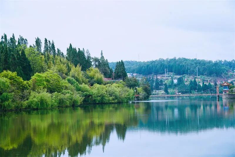 查姆湖位于双柏县城,夏季翠柳微拂、碧波荡漾,恍如一幅“青绿”山水名画。