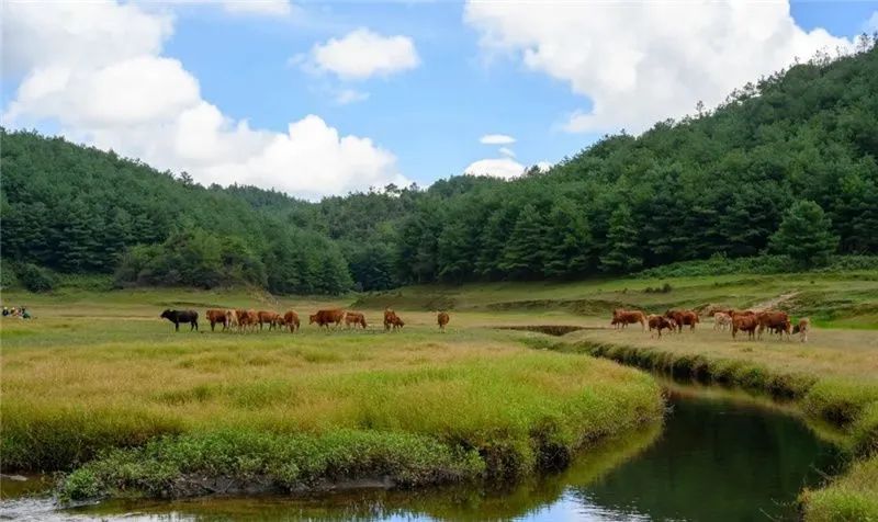 溪水潺潺、野花遍野、牛羊成群