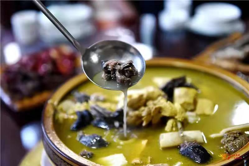 嘎洒汤锅品的是味,双柏彝族汤锅品的是情。喝一碗牛羊汤锅,怎一个情字了得?你能抵住彝家人的热情、能拒绝花鼓舞、芦笙舞和四弦舞的缠绵,酒歌的奔放?一群食得人间烟火、有情有意的饮食男女,伴着这些浓情的生活佐料,更增添了品彝家汤锅的情趣。