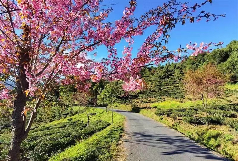 一路蜿蜒到法脿白竹山,樱花之影还依稀可见,东坡先生“只恐夜深花睡去,故烧高烛照红妆”的怜惜之情时有所感。茶香和阳光一样温煦,在茶的世界里,天地是高雅的,茶农像高僧,胸无尘埃。在没有寒潮的时空里,大麦地是另一个世外桃源,番茄缀枝,染红了彝民的笑脸,绿汁江安静无波,像一个熟睡的少女。