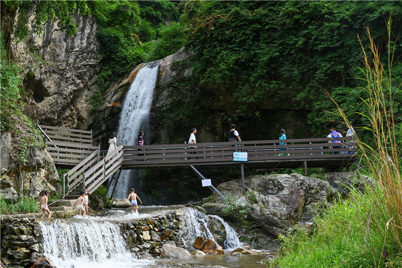 从鄂嘉集镇出发,沿水弥线公路行走1公里就到了虹龙河瀑布景区。虹龙河瀑布高58米,远远看去只见一股清流直泻而下,在日光映射下像是悬空彩练。在春日渐暖的鄂嘉,掬一捧清泉,约上亲朋好友,蓝天白云,山水相间,到此休闲野营岂不美哉。