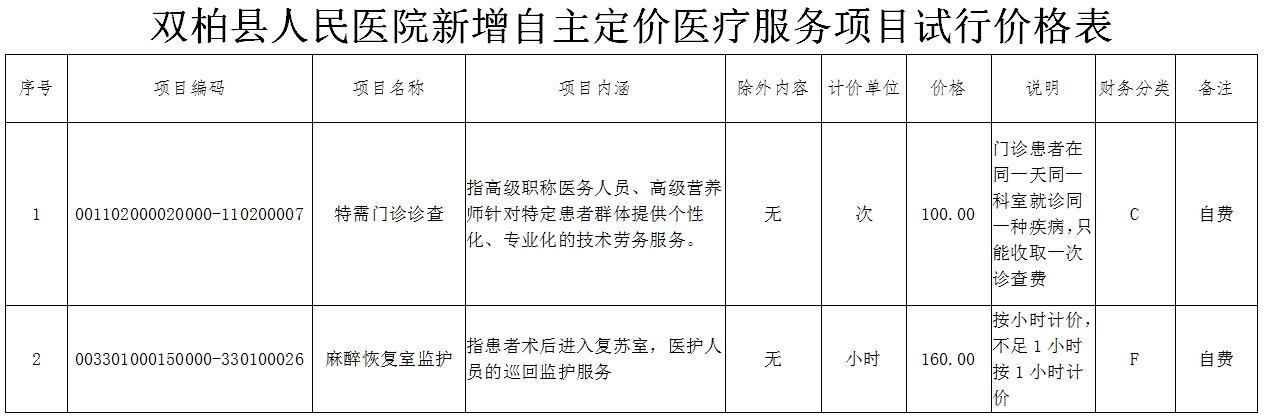 为了提升医疗服务能力,提高医疗服务效率,为患者提供更加优质、高效、便捷的服务,根据《云南省卫生健康委云南省医疗保障局关于云南省2020年新增医疗服务价格项目的通知》(云卫财务发〔2020〕47号)文件精神,根据成本费用和市场需求等因素制定我院“特需门诊诊查”等2项新增自主定价医疗服务价格,试行期1年。按照文件要求,在执行前一周向社会大众进行公示,现公示如下: