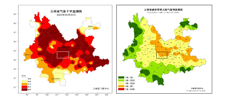 长期连续降水偏少、气温偏高导致我县气象干旱持续发展。根据云南省卫星遥感中心监测分析,截至5月4日,我县气象干旱仍维持特旱等级,森林火险气象等级维持4级。双柏县气象局分别于4月13日、4月22日、5月2日发布干旱橙色预警。
