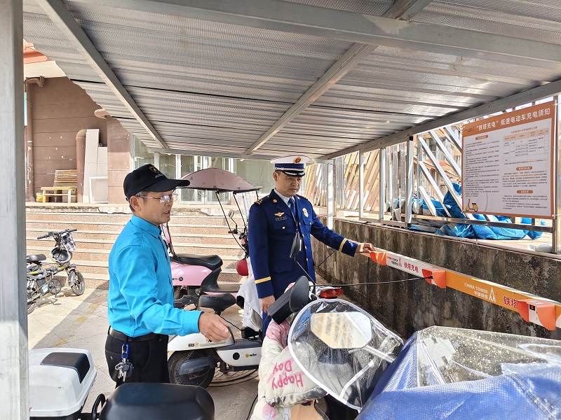 排查整治过程中,检查人员采取“逐栋排查、逐户提醒、现场整改”的方式,对小区楼道、楼梯间、安全出口等重点区域进行拉网式排查。每到一处,监督员仔细查看电动自行车停放是否规范、充电线路是否符合安全标准、集中充电装置是否完好有效、消防器材是否配备齐全等情况。针对排查发现的电动自行车进楼入户、占用疏散通道停放充电等隐患问题,现场对违规居民进行耐心劝导,详细讲解电动自行车违规充电、停放引发火灾的严重危害性,以及相关消防法律法规。告知居民电动自行车火灾蔓延速度快、有毒烟气大,极易造成人员伤亡和财产损失,引导居民自觉摒弃违规用电行为。 同时,以此次检查行动为契机,同步开展消防安全宣传教育,现场讲解电动自行车正确充电方法、日常维护保养要点、火灾逃生自救技巧等知识。针对老年居民、独居住户等重点群体,监督员进行一对一宣传讲解,用通俗易懂的语言普及消防常识,提醒居民切勿将电动自行车电池带入室内充电,自觉到小区规范集中充电区域充电,从源头上防范火灾风险。
